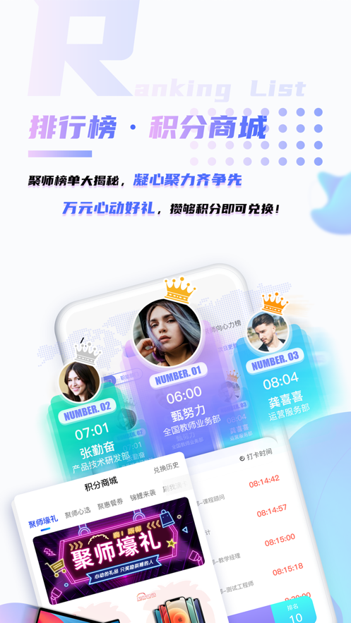 3、排行榜当中为用户揭秘聚师榜单,让所有的用户都能凝心聚力齐争先。