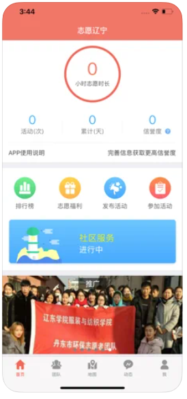辽宁志愿者app是为志愿辽宁网站开发的一款手机端软件,辽宁志愿者app目前分为“首页”、“团队”、“地图”、“动态”、“我”五个模块。app方便用户在户外参加活动时使用。辽宁志愿者app下载就在yn下载站。