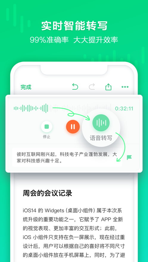 实时转写:高转写准确率,语音到文字,听到即看到;
