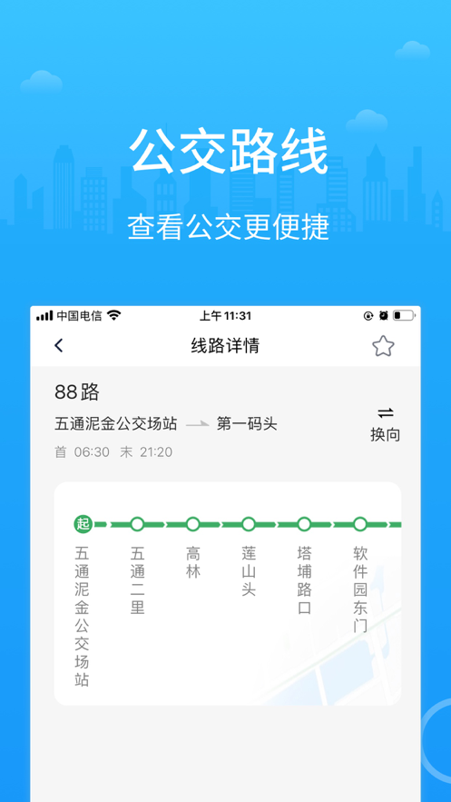 再也不要担心坐过站啦,赶不上车啦,实时为你掌握公交的动向,不管是在车上还是等车都会提前一个站开始提醒。