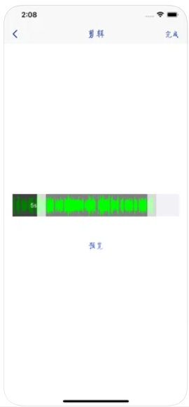 软件页面非常简洁,用户点击屏幕即可开始和结束录音,操作没有任何难度,上手快。在使用的时候,你还可以对音频进行剪辑,给自己的音频添加各种音乐。