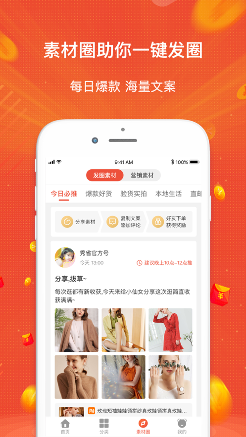 秀省苹果版是一款可以领取优惠券的网上购物软件,帮助消费者以更低价格购买同样的商品,轻松省钱,同时通过分享优惠商品还可获得平台返利。秀省app下载后不仅帮助购买的顾客省下更多的花费,还帮助更多的创业者们实现零门槛创业,在平台上开店。