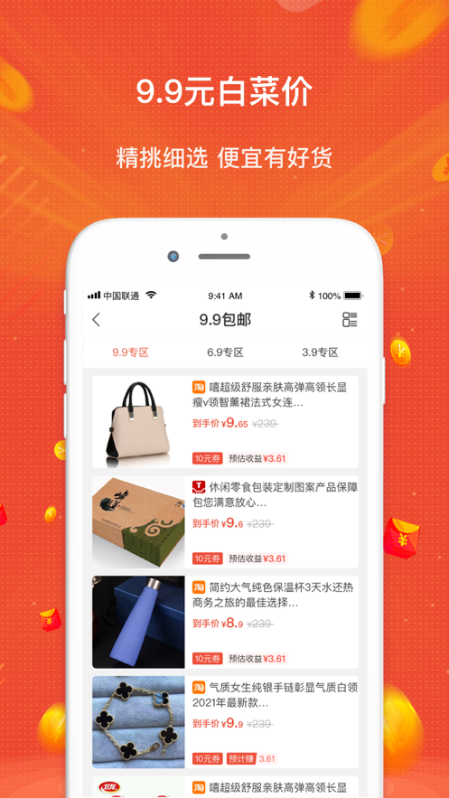 1、秀省app下载后设置特卖专区、精选商品、包邮专区等等各种导购专区供用户查看;