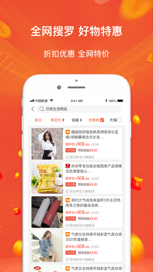2、平台里面的商品种类丰富,用户可以随时领取海量商品的优惠券之后再进行下单更加省钱;