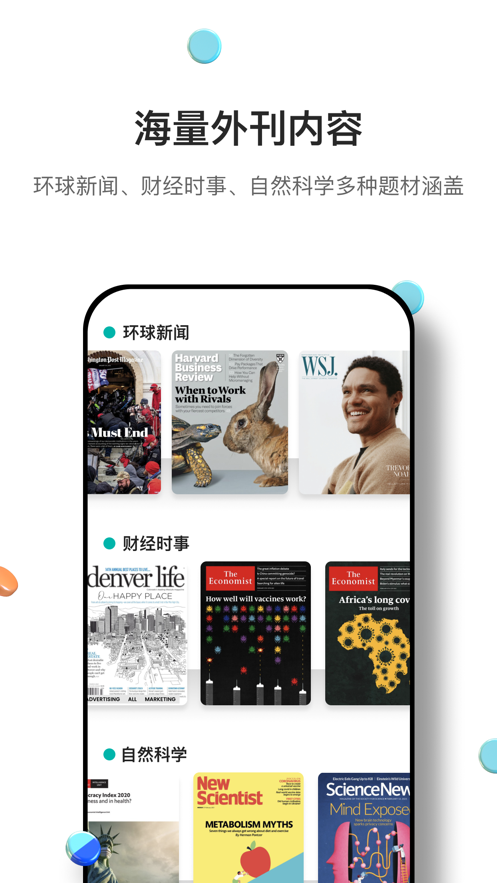 1、薄荷英语外刊app下载后内含海量外刊资源,能读更能听;