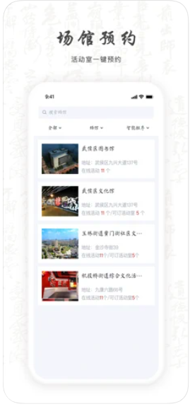 2、武侯文体旅游云app支持根据文体活动类型的不同进行分类筛选,智能排序等;