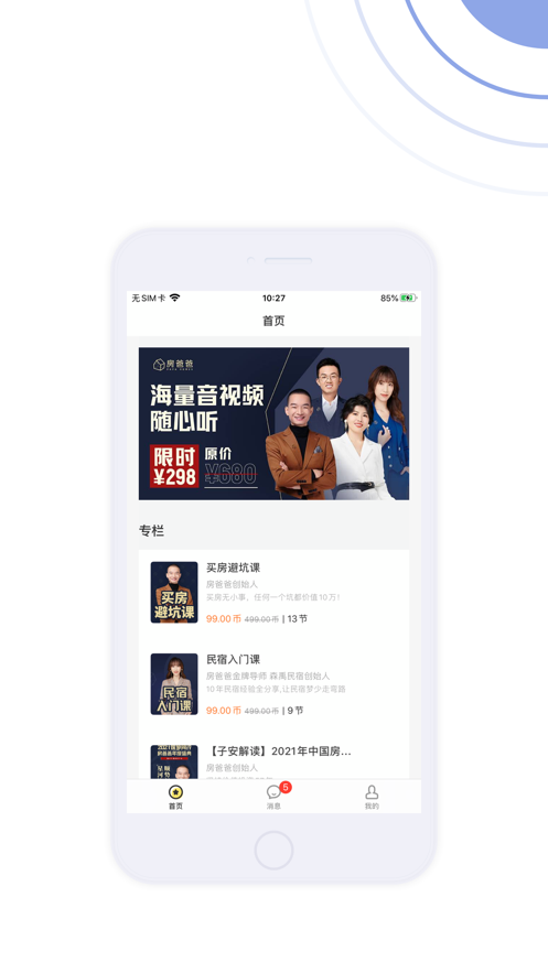 房爸爸小金库苹果版是一款帮助用户避坑的教育培训类软件,买房是每个人的人生大事,但是在买房的过程中往往避免不了会被老手所坑,房爸爸小金库app下载后软件内拥有海量的视频帮助用户如何买房最为节省,想要开酒店民宿的用户也可以在这里查看专业的课程进行学习。