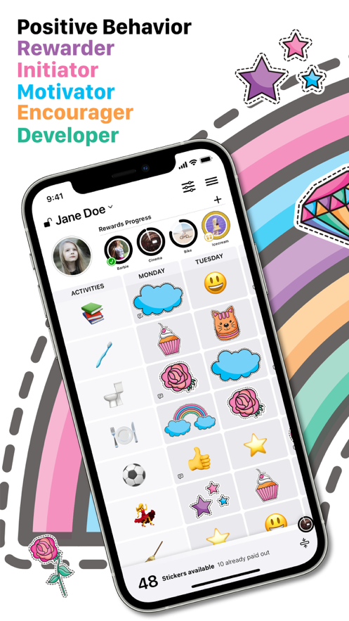 奖励图表和目标跟踪器苹果版是一款非常实用的软件,旨在帮助促进积极的行为发展,用户可以在这里设定目标并通过分配贴纸给令人满意的行为积累奖励,从而让自己的孩子能够养成良好的习惯,奖励图表和目标跟踪器app下载后每个图表有多个奖励,可以灵活地记录孩子们的行为。