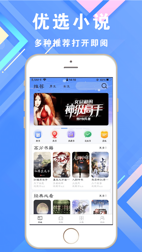 2、精选书城:书城随意切换,各种各样类型丰富,好书多多看个够;