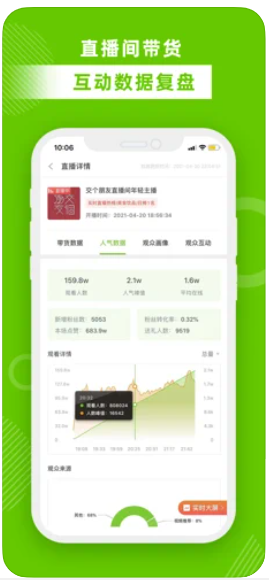 实时掌握直播流量,销量变化数据