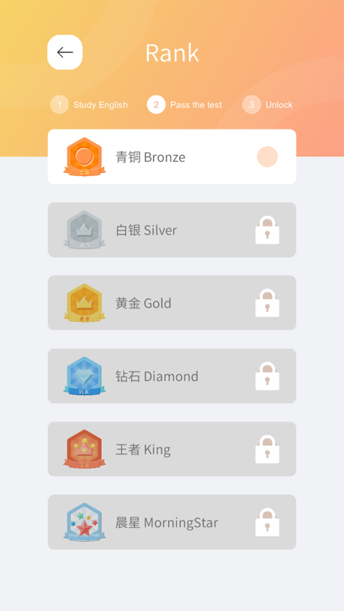 1、每通过10关即可解锁一个段位,从青铜、白银、黄金一直升级到最高级别晨星段位;
