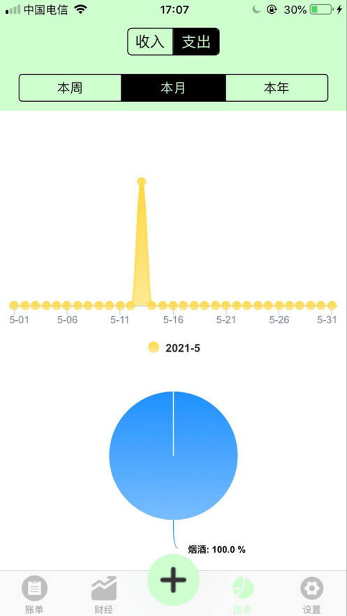 3、图标展现用户的各类支出收入,结余和汇总信息,方便用户了解自己的消费倾向。
