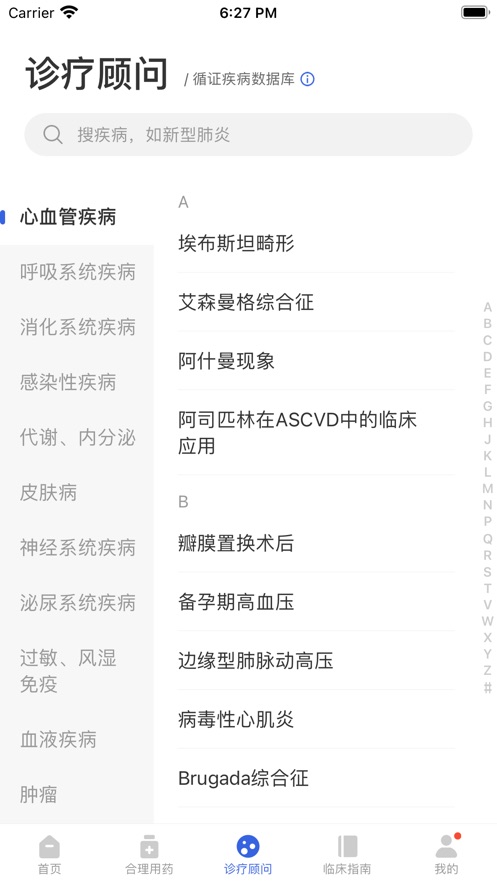 2. 诊疗顾问:数千条临床常见疾病的诊疗决策支持,覆盖基础知识、诊断依据、治疗原则、控制目标等核心诊疗环节,并提供疾病的「经典用药」信息查询,数据更实用,决策更安全。
