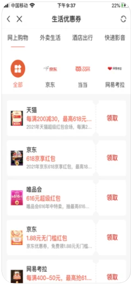 3、每天都有大量的商品优惠券更新。用户在下单前获取优惠券省钱非常简单。
