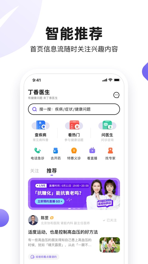 丁香医生 App集合各领域专家共建科普内容,权威医生为用户提供7*24小时在线问诊和专业解答,致力于解决用户各类健康场景相关问题。