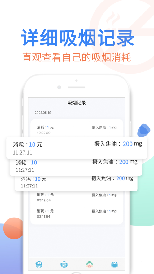 1、利用香烟记录功能,就能清晰地看到自己今日抽烟量与戒烟的历程;