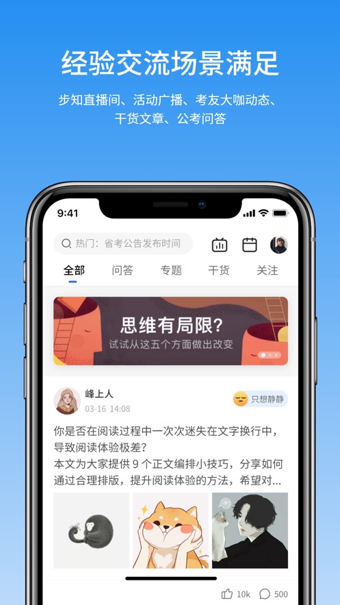5.“发现”大咖上岸经验:每日更新大咖老师们的干货技巧文章,更有公考社区精华帖、重要招考公告及职位信息发布。致力于为考生提供及时、有效的学习服务,帮助考生全力备考,冲刺上岸。