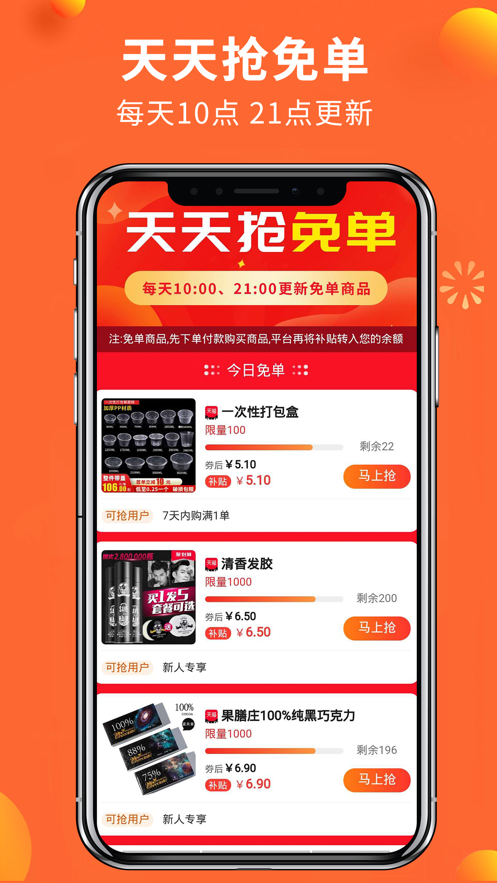 返利鸭app是一款价格实惠的网上购物软件,每天都有固定的时间点可以枪免单的资格,还有各种6.6、9.9等等优惠专区供用户进行商品的挑选,即使是地价也能够购买到很多好用优质的商品,此外,返利鸭下载后还有超高的返利,在用户下一次下单的时候可以直接抵现金。