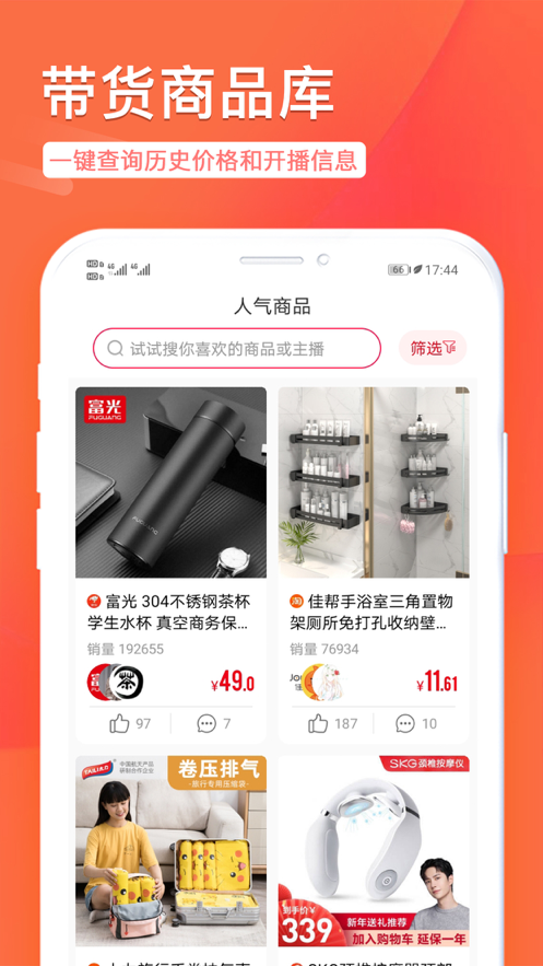 3、直播比价:超百万级商品库让直播带货的各类商品价格对比一目了然;