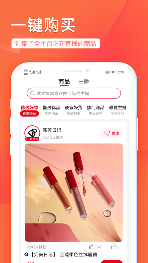 你想买苹果版是一款非常方便的网上购物软件,为用户精选各种好物,还有很多主播在线带货直播,用户关注自己喜欢的主播就能够获得开播提醒,此外,你想买app下载后还有最好最齐的直播商品价格信息和直播预告信息,让用户能够及时关注自己想要购买的商品。