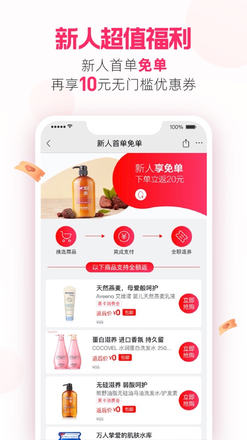 3. 更多优惠:手机限时购、会员专享,1元试用,天天特价。