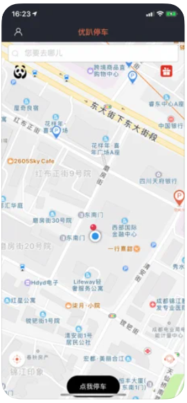 4、优趴停车app里,用户可以搜索指定位置附近对外开放停车的车场。