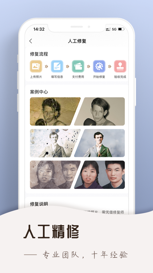 3、人像精修老照片:平台拥有众多经验丰富的润色师,为您提供专业可靠的一对一在线服务。