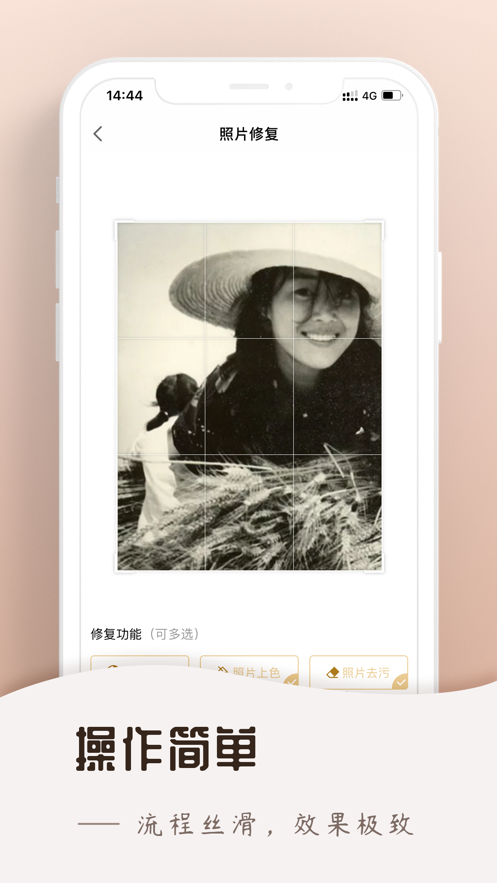 1、操作简单,上手容易,只需要用手指选择自己需要的功能就能快速将老照片变成高清图片;