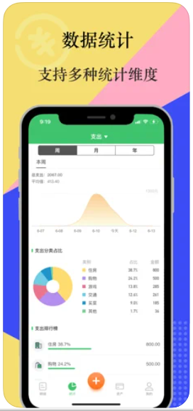 3、统计分析:多样的统计分析图表,帮助用户了解自己的消费习惯。