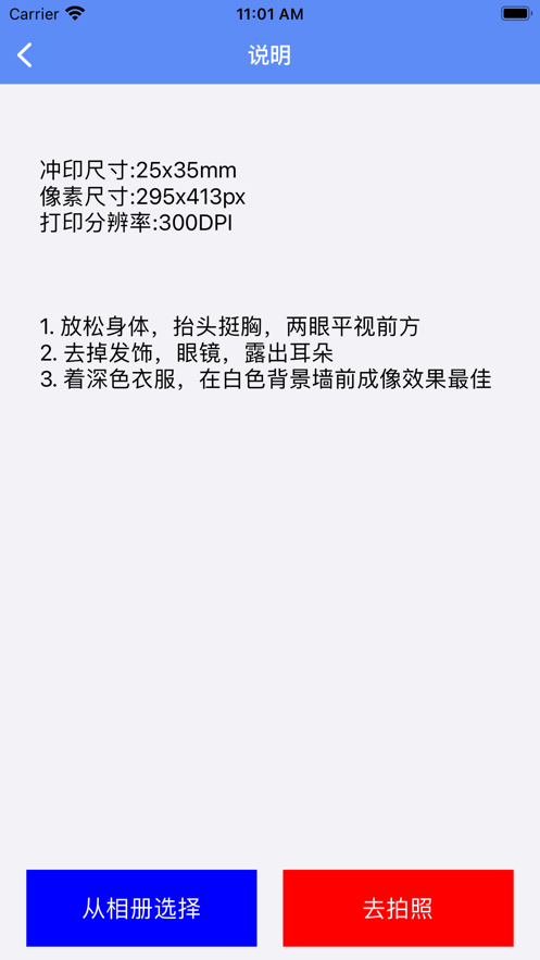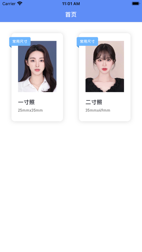 1、新颜证件照app下载后提供多种尺寸和底色的证件照拍摄功能;