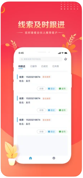 易荐邦门店端app是一款帮助经销商伙伴进行线索跟进的APP。用户能在易荐邦门店端app里获取新的线索,这样用户就能获得对应的内容,让您可以及时掌握相关的分配信息。在易荐邦门店端app轻松的进行客户跟进,这样才能帮助您快速完成相关的交易。