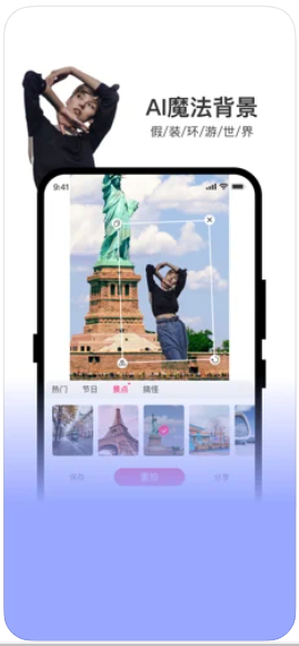 2、AI智能抠图,人物即刻融入壮丽山河、名胜古迹、趣味搞怪背景,假装环游世界!