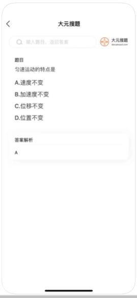 大元搜题app是一款好用的拍照搜题软件,大元搜题app具有多个科目的标题类型,用户能够在这里拍照搜题、语音搜题、文字搜题,大元搜题app协助你处理不会的难题。欢迎进行大元搜题苹果版下载体验。