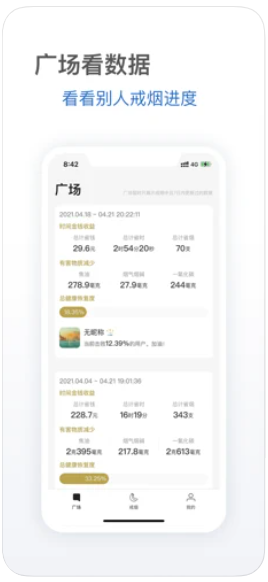 + 添加广场页,更多数据展示,戒烟更有动力。