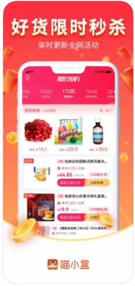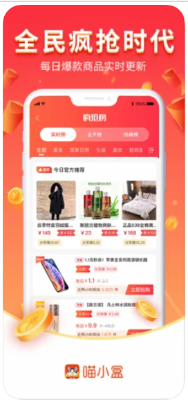 1、每天更新限量特价商品限时抢购,先到先得,通过喵小盒购买商品,都有补贴,补贴就是钱。