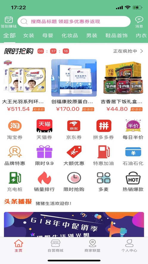 3、猪猪生活最新版下载后每天都会更新不同类型的大牌电商优惠折扣劵和限时折扣价。