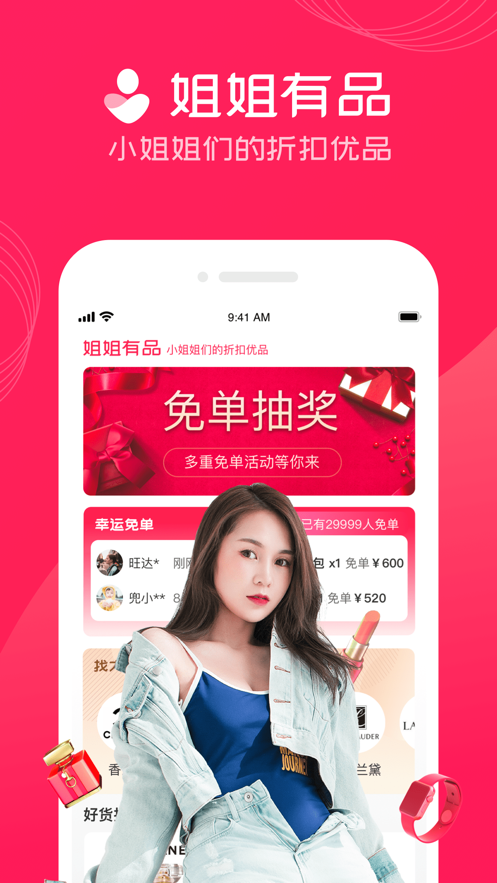 姐姐有品app是一款专为女性所打造的网上购物软件,平台上为用户推荐大量的大牌化妆品、香水、包包等等,用户可以享受到超低的折扣,还有几率能够免单购买,姐姐有品苹果版下载后为用户精选正品好货,对货物不满意也可及时进行退换。