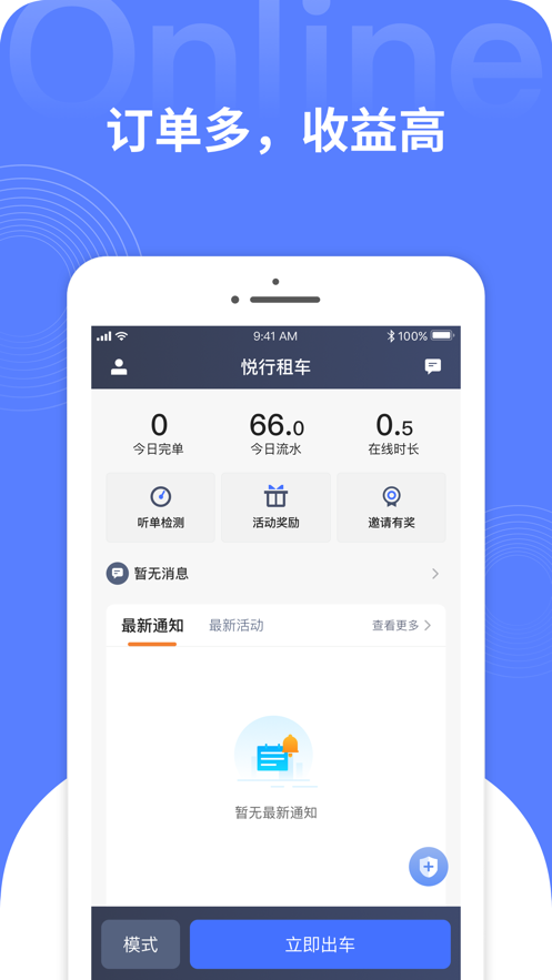2、悦行租车app下载后为司机朋友们提供更快更好更专业更优质的网约车接单服务;
