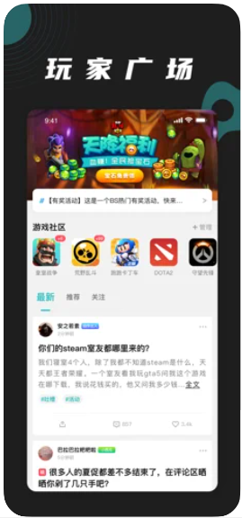 1、专为各种线上线下赛事打造,各种业余联赛让你崭露头角,同时丰富的游戏资讯,攻略,玩家分享社区都在这里,让你找到最有意思的玩家群体
