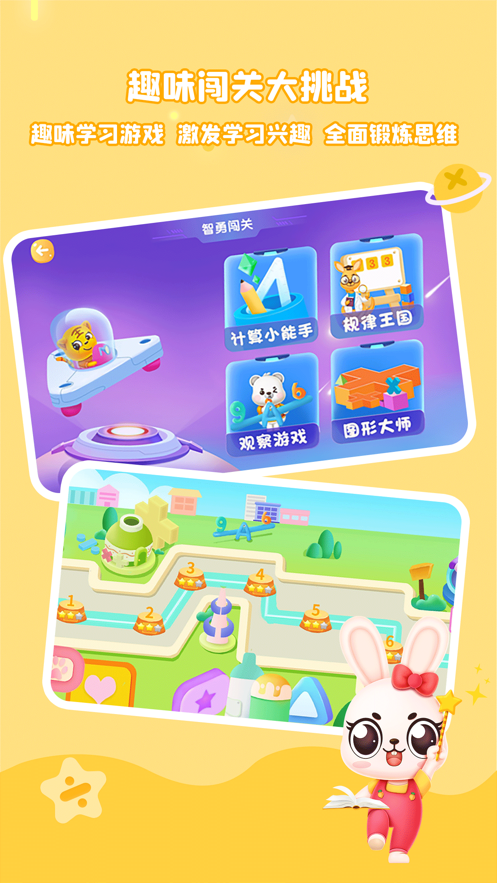 2、趣味关卡挑战:趣味学习游戏,激发学习兴趣,全方位锻炼孩子的思维;