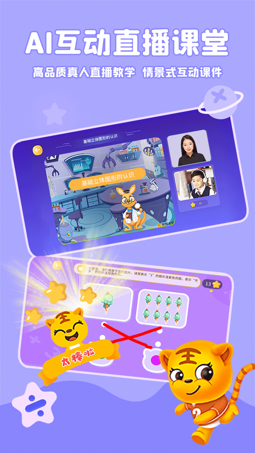 1、AI互动直播课堂:智慧虎思维苹果版下载后拥有优质直播教学和情景互动课件;