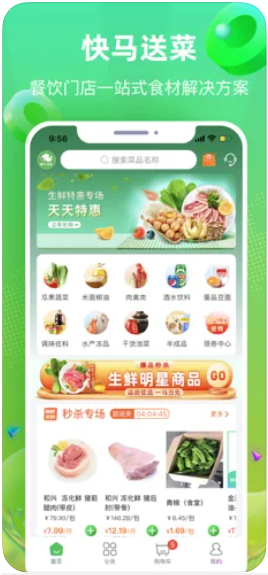 快马送菜app新颖低价,饭店采购首选平台,上千种好菜,超高性价比、精选优质食材、专业配送车队,专属客服效劳。