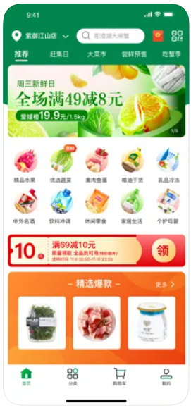 近8000个SKU,新颖蔬果、肉禽蛋类、米面粮油、水产海鲜、南北干货、便当速食、小型家电、家居好物等,你喜欢的我都有!