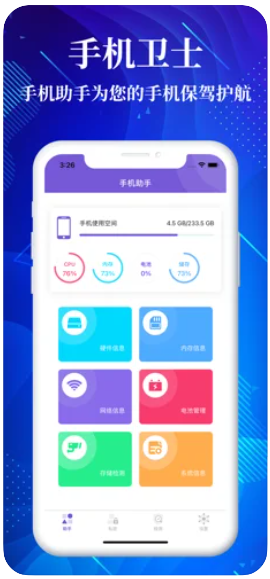 2、协助您查看手机各种信息如:CPU、电池、内存、网络等。