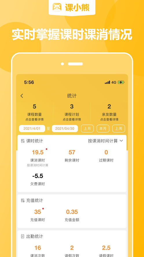 2、课小熊app下载后比较适合K12、音乐、美术、体育、幼儿教育、职业培训等各类培训学校的学员课消;