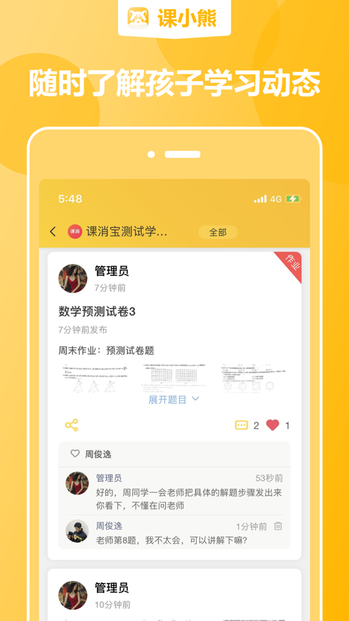 这款课小熊苹果版很好的结局了家长、学生、教师之间的交流难题,三方直接通过平台就能够沟通讨论,制定学习计划,需要的用户朋友们快来yn下载站下载安装吧!