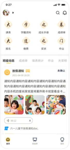 2、发布成果单、发布电子奖状、发布校园通知和班级通知等;