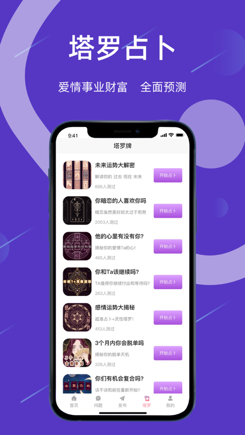 3、软件上拥有独特的塔罗牌功能,可以预测用户的未来走向,测算出用户的爱情、事业和财富走向。