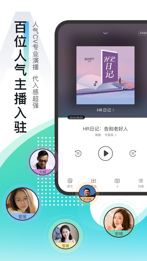 有声故事解放你的双眼,Melody莱兮、桑梓、晒月水妖等知名主播倾情演绎,耳听故事,更有代入感!