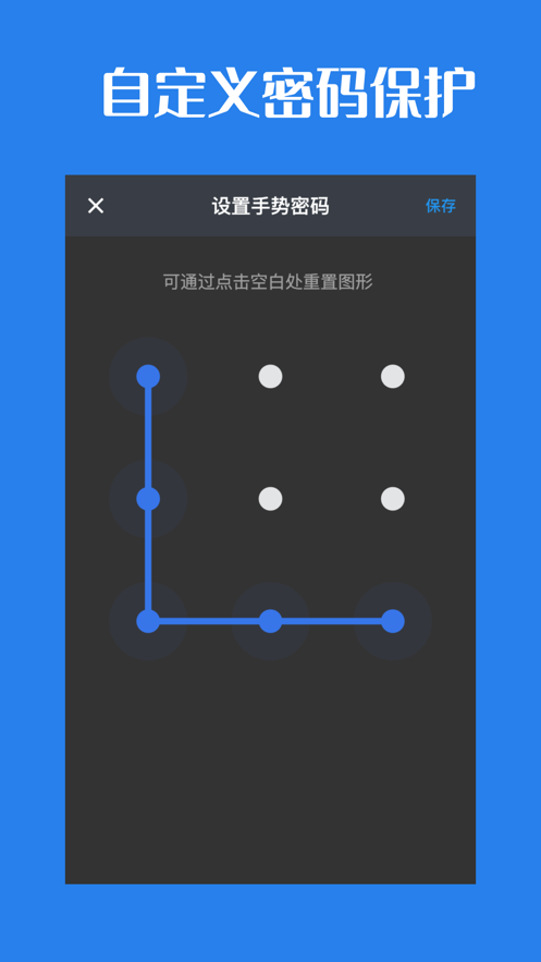 1、导入私密照片视频,用户可以添加手势密码和指纹锁,也可以锁定单个图片文件夹;